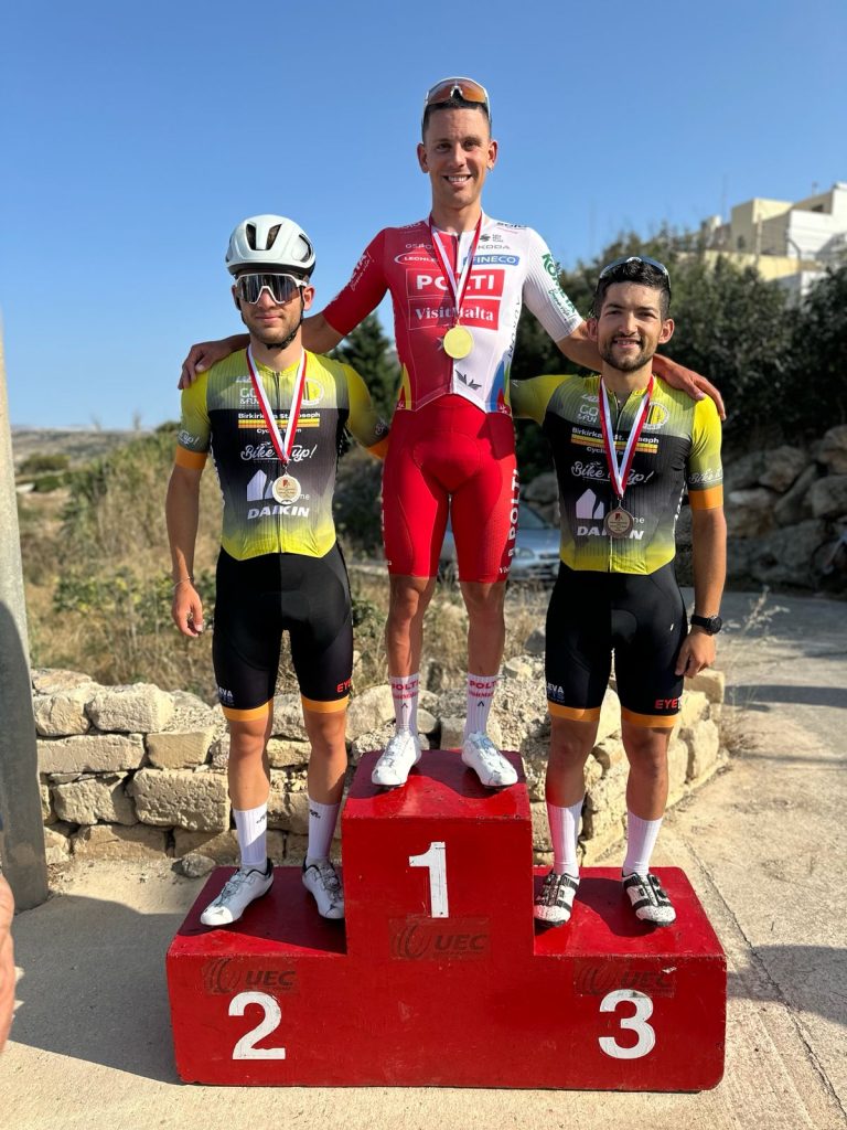 John Camilleri led the way with a brilliant ride, finishing 2nd in the Elite category and 5th overall, narrowly missing the general podium by just two seconds. Jacob Schembri and Daniel Briffa backed him up with 5th and 6th place finishes in the Elite category, giving us three riders in the top ten. Collectively, we secured 3rd in the Team Classification, our first team podium abroad.