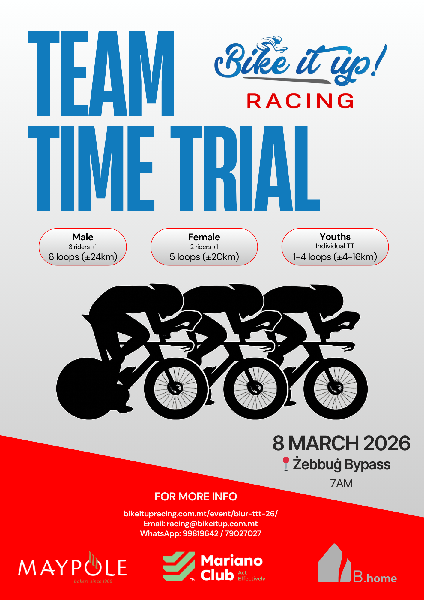 For more details, WhatsApp 99819642 / 79027027 or email racing@bikeitup.com.mt